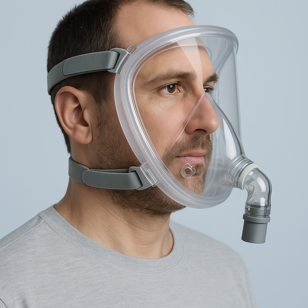 Su estructura cubre todo el rostro para garantizar un sellado confiable, permitiendo una ventilación no invasiva eficaz incluso en usos prolongados, ayudando a prevenir fugas, lesiones faciales y brindando una experiencia de uso cómoda y segura.