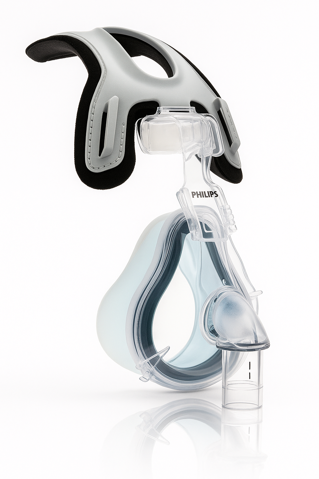 Tamaño L con CapStrap y codo con válvula antiasfixiade 1 fuga. La máscara oronasal AF811 proporciona comodidad a largo plazo con una suave almohadilla de gel que distribuye la presión sobre la cara y una segunda almohadilla de silicona para sellado eficaz alrededor del puente nasal con presión mínima. El arnés CapStrap provee estabilidad adicional y comodidad, simplificando la aplicación de la máscara, a la vez que facilitan el acceso oral del cuidado al paciente. El soporte frontal ajustable mejora la colocación de la máscara y junto al material de espuma reduce el riesgo de lesiones cutáneas. El soporte de pestañas de Velcro y de clips en pivote simplifican y agilizan el ajuste y la remoción de la máscara.