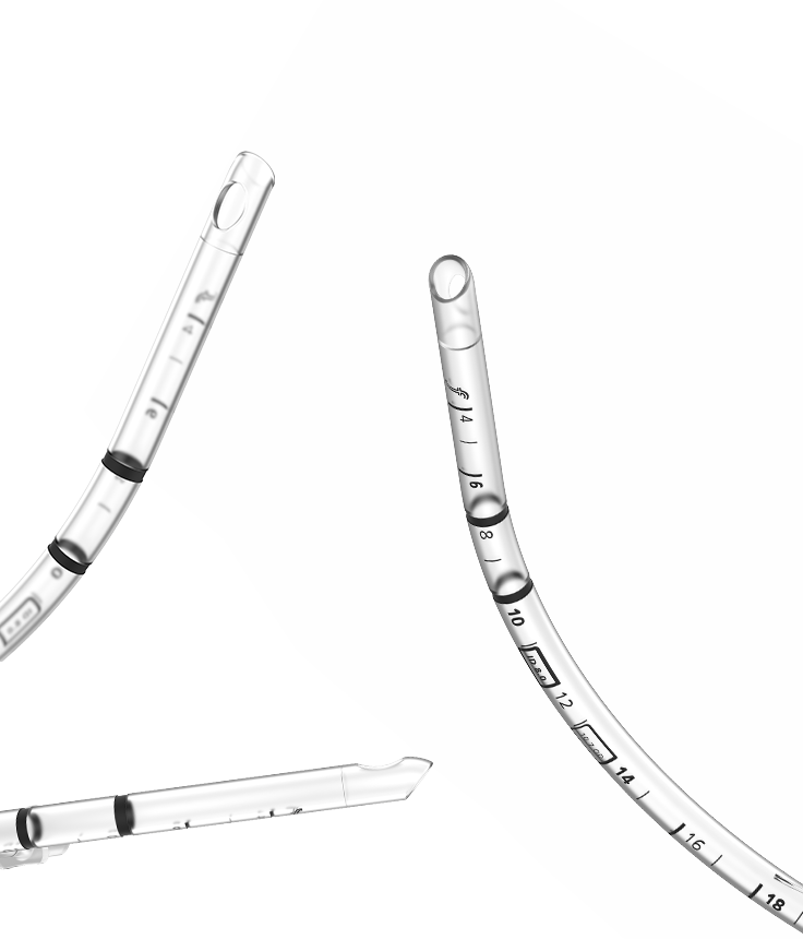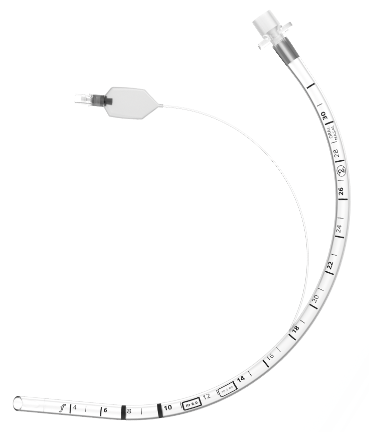 Tubo endotraqueal sin balón, provisto de una guía de profundidad de línea doble y línea radiopaca de alta resolución. Es resistente a las deformaciones pero con el calor del tejido se moldea mejor a la anotomía del paciente. En su punta redondeada, biselada y atraumática se puede observar una segunda apertura como salvaguarda en caso de bloqueos, llamada Ojo de Murphy.