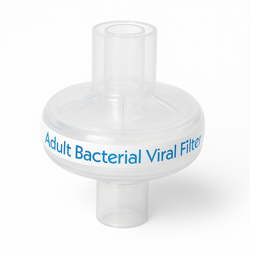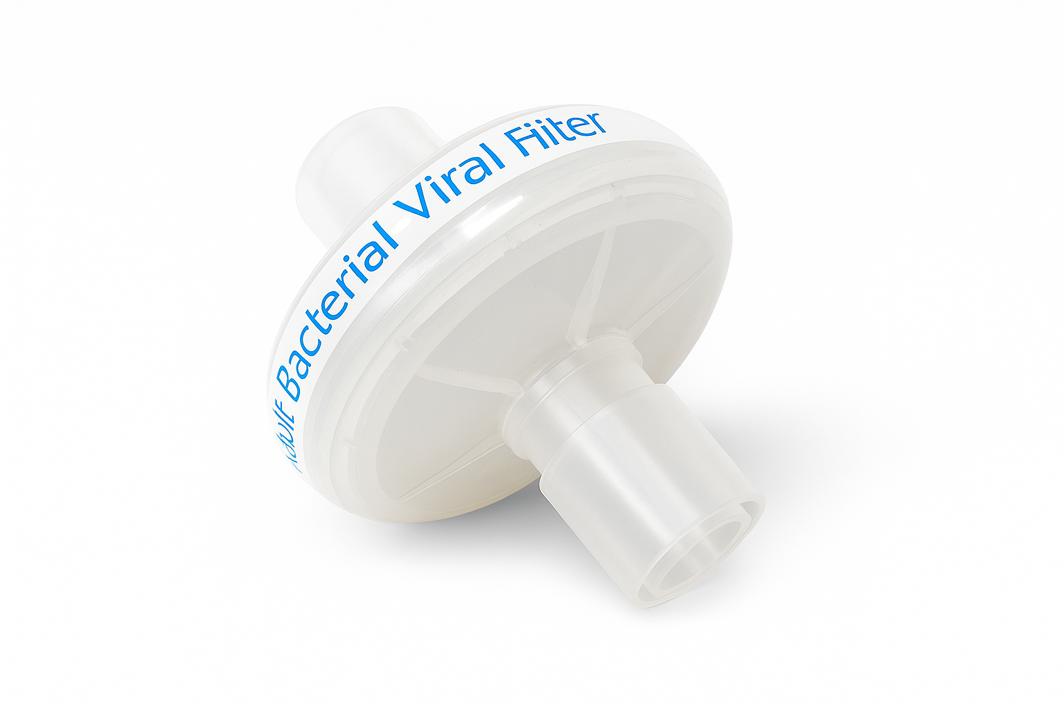Filtro de respiración viral/bacteriano VentiShield Flexicare. Filtro bacteriano/viral electrostático con eficiencia del 99,999%, diseñado de forma redonda, liviana y compacta para reducir el riesgo de lesiones en el extremo proximal cercano al paciente. Con conexiones universales y embalaje estéril, ayuda a prevenir la transmisión de bacterias y virus, evitando infecciones cruzadas durante anestesia, respiración artificial y ventilación asistida gracias a su medio filtrante electrostático.