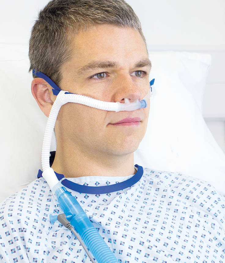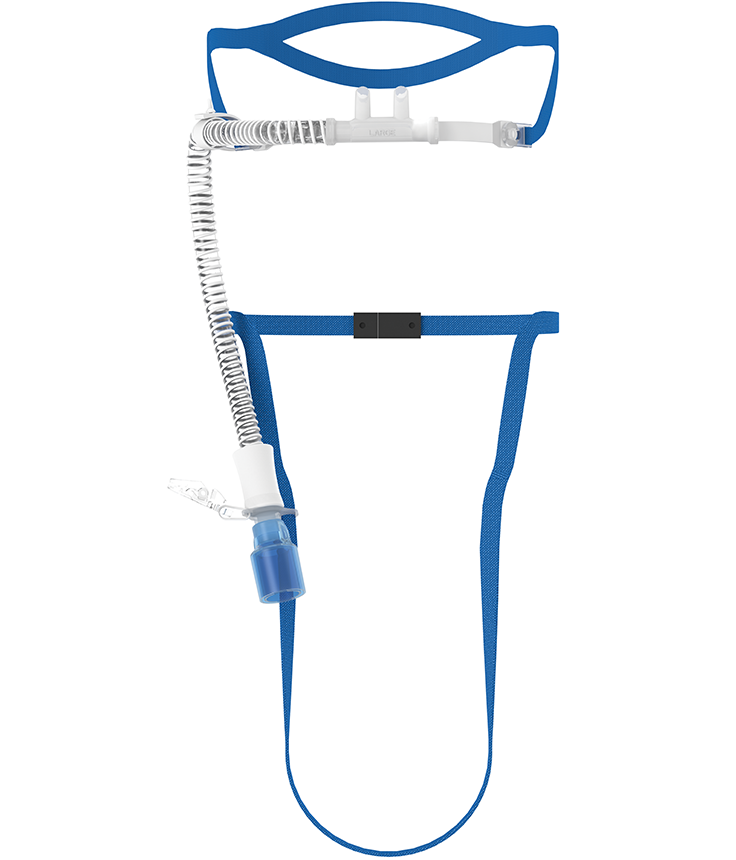 Cánula nasal de alto flujo diseñada para administrar un amplio rango de concentraciones de oxígeno con tasas de flujo variables en condiciones óptimas, con capacidad de alto flujo de hasta 60 L/min. Ideal para pacientes que respiran espontáneamente y se encuentran en destete de la ventilación controlada, pudiendo incluir interfaz para traqueostomía. Cuenta con pinzas nasales de silicona de contorno anatómico suave y altamente tolerable, almohadilla de silicona para mayor confort, suministro confiable gracias a su diámetro ancho y tubo de borde interno liso y versátil. Incluye correílla de cabeza escindida, cómoda y fácil de ajustar, y conector universal en pivote seguro y de alta compatibilidad.
