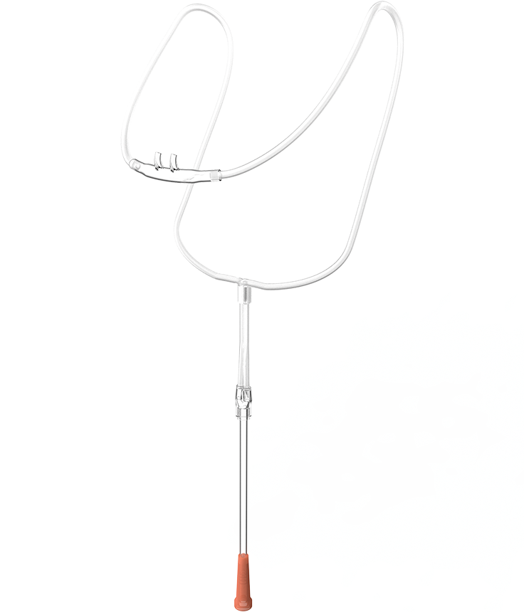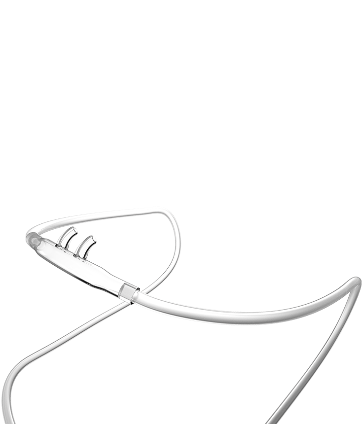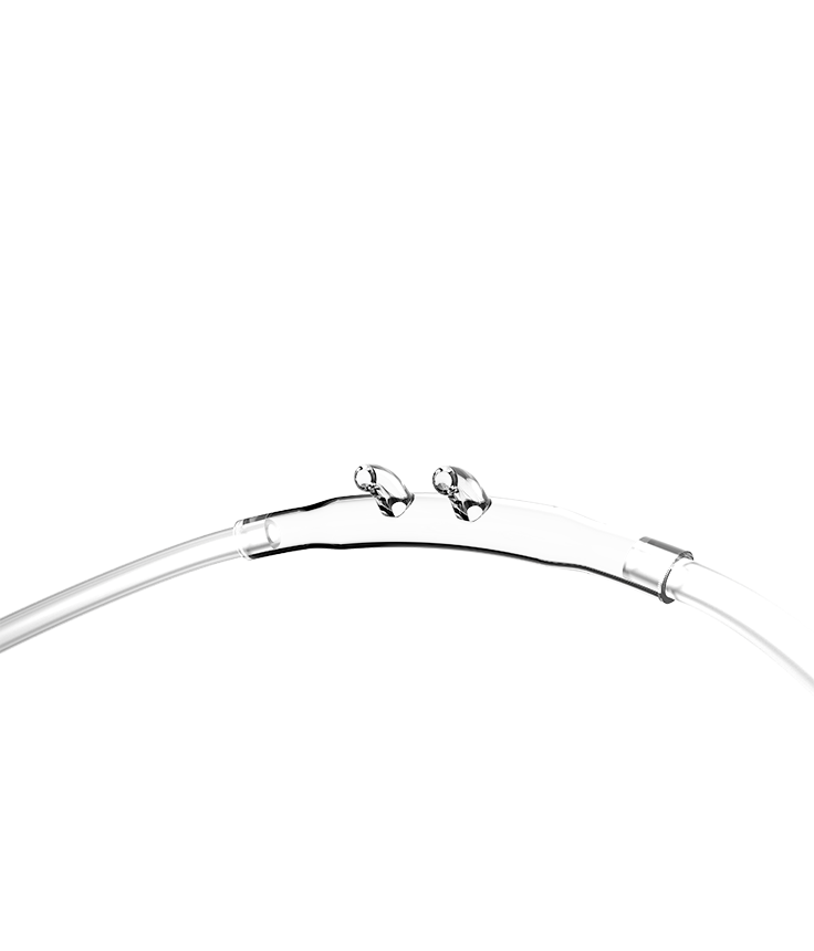 Adulto, blanda curva, con línea de O2. Las cánulas nasales se utilizan por su simplicidad y buena aceptación por los pacientes durante la administración de oxígeno complementario. El aire ambiente entra a través de las fosas nasales y el FiO2 alcanzado es proporcional a la tasa de flujo de oxígeno (1-6 LPM), el volumen tidal del paciente, la tasa de flujo inspiratorio y el volumen de la faringe nasal. Las cánulas nasales impiden la reinhalación y resultan cómodas aunque se utilicen durante un largo período de tiempo. Debido a estas, la buena aceptación de la terapia es mayor, puesto que permiten a los pacientes hablar, comer y beber. La suavidad de los tubos sobre las orejas y la cara aumentan la comodidad del paciente y disminuyen el riesgo de úlceras por presión y sus costos asociados.