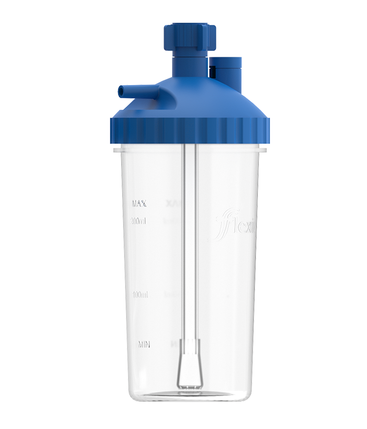 Debido a la sequedad de los gases médicos, se recomienda utilizar humidificación a fin de evitar daños en el tracto respiratorio, mejorando la comodidad y el cumplimiento del paciente. Un humidificador de burbujas agrega humedad al oxígeno cuando este atraviesa el dispositivo para administrar gas humidificado al paciente, resultando adecuados para los entornos hospitalarios y domésticos. Con difusor de PVC 200ml 6psi (para cuidado ambulatorio).
