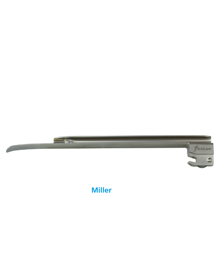 Rama de laringoscopio de fibra óptica reutilizable, recta con punta curva poco profunda que facilita el control en pacientes con epiglotis grande, como en pediatría. La luz se transfiere desde la lámpara ubicada en el mango hasta el extremo proximal de la rama mediante un haz de fibras ópticas, proporcionando iluminación sin calor y evitando lesiones en los tejidos durante el procedimiento.