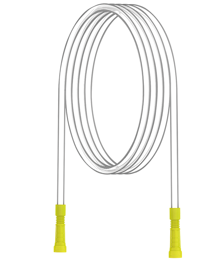 Diámetro de 5mm y longitud de 3m. Tubos transparentes, no bobinados, de burbujas de aspiración, con embalaje en sobres estériles y sistema de apertura despegable, conectores hembra universal y macho/macho de repuesto.