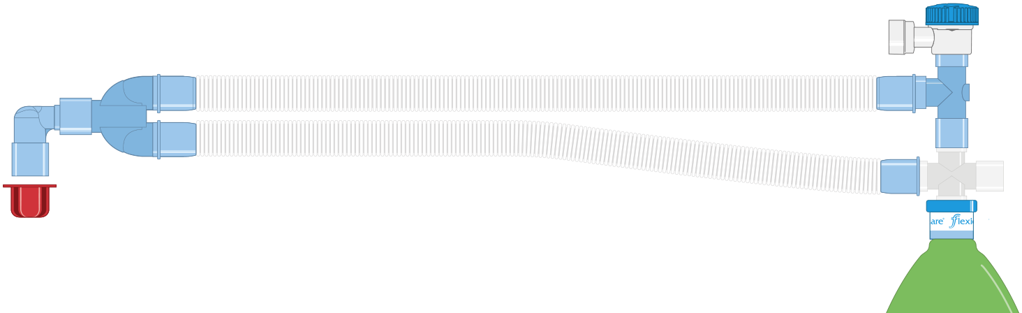 Sistema Mapleson A Paralelo (1,6m) con tubos corrugados ligeros de 22mm, con una bolsa de reservorio 2L, con una válvula APL adulta.