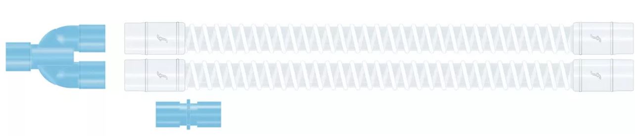 Circuito adulto de interior liso (2,4m) con tubos de interior liso ligeros de 22mm, con conector en Y extraíble, conectores de 22mm hembra flexibles, y conector de macho/macho de repuesto.