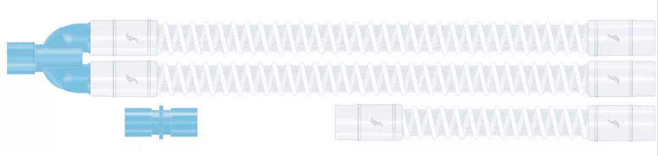 Circuito adulto de interior liso (2,4m) con tubos de interior liso ligeros de 22mm, con conector en Y, conectores de 22mm hembra flexibles, extensión de 0,8m hembra/hembra y conector de macho/macho de repuesto.
