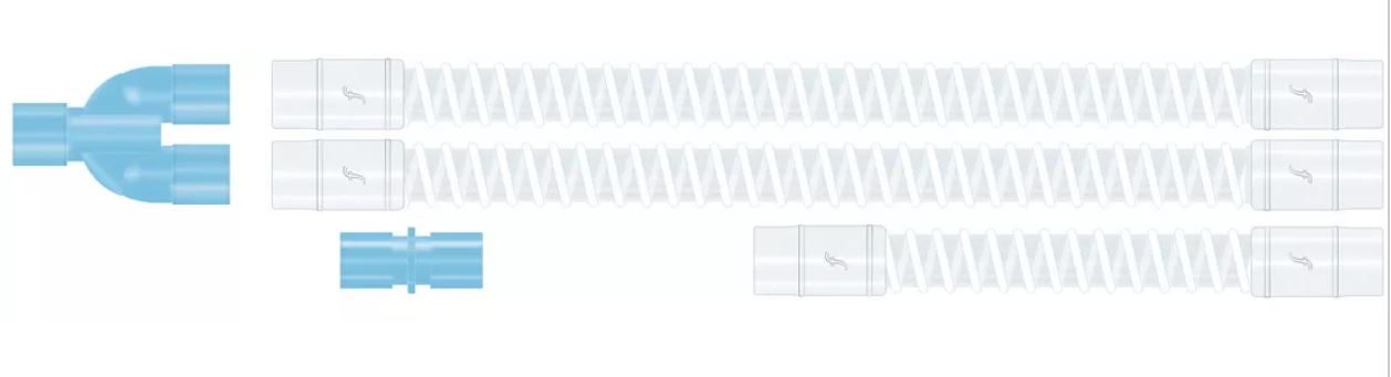 Circuito adulto de interior liso (1,6m) con tubos de interior liso ligeros de 22mm, con conector en Y extraíble, conectores de 22mm hembra flexibles, extensión de 0,8m hembra/hembra y conector de macho/macho de repuesto.