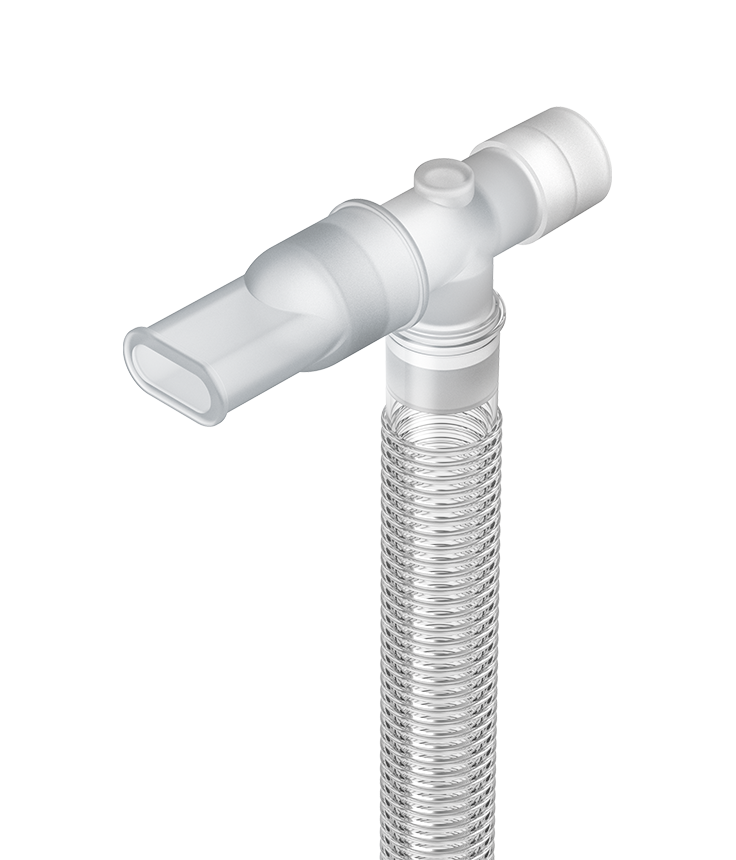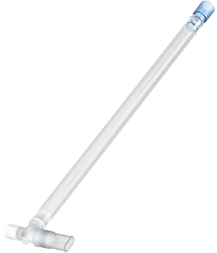 Circuito de Entonox (2,4 m) con tubo corrugado de baja resistencia de 22mm, con conector de 22mm hembra, válvula unidireccional y boquilla.