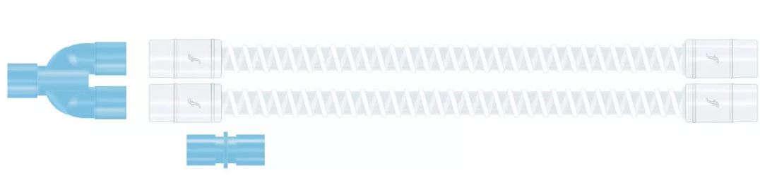Circuito pediátrico de interior liso (1,5m) con tubos de interior liso ligeros de 15mm, con conector en Y extraíble, conectores de 22mm hembra ?exibles y conector de macho/macho de repuesto.