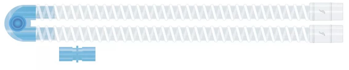 Circuito pediátrico de interior liso (1,5m) con tubos de interior liso ligeros de espacio residual mínimo de 15mm, con conector en Y con puertos de monitorización, conectores de 22mm hembra ?exibles y conector demacho/macho de repuesto.