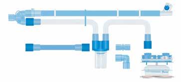 Sistema de respiración con cable calefactado simple de 22mm para adultos (1,6m), con conector en Y con puerto MDI y puerto de presión, colector de agua, extensión de 0,5m, conector 22 macho/22 macho, conector 15 hembra de repuesto, codo 22 hembra/22 hembra y cámara de llenado automático.