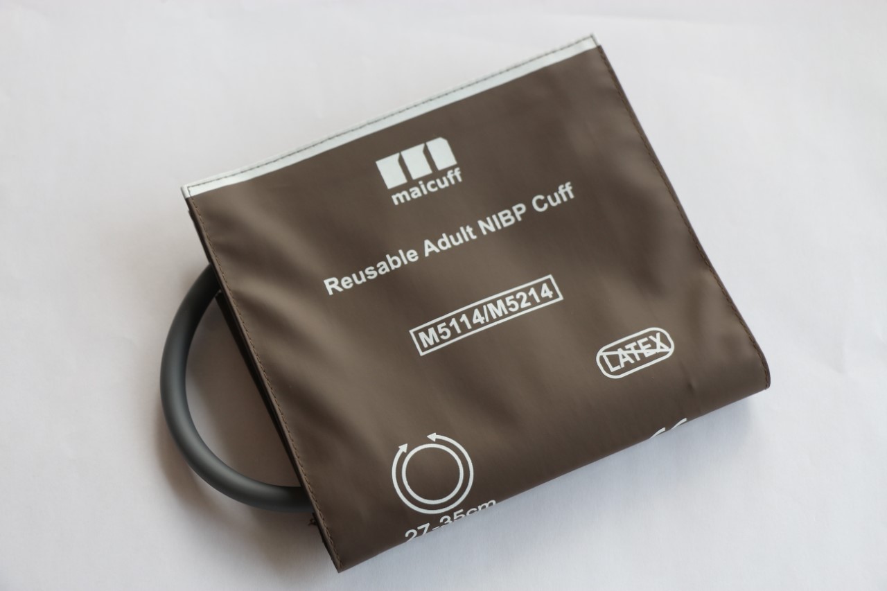 Brazal reusable para PNI de algodón laminado y cámara TPU, de 2 vías, con conexiones para todo tipo de monitores, fáciles de adaptar y colocar con cierres de abrojo. Infante. 5x14 cm (circ: 9-14 cm).