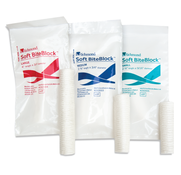 Bloqueador dental de algodón BiteBlock que reduce el riesgo de comprimir el tubo endotraqueal o la máscara laríngea. Se coloca entre los molares posteriores ejerciendo presión sobre estos en vez de los dientes anteriores para protegerlos y a la lengua. Están empaquetados individualmente para proteger al producto de contaminación externa hasta el momento de usarse. Esta compuesto de 100% algodón médico, absorbente y completamente libre de látex. Comparado con la gasa enrollada, ahorra tiempo, trabajo por el personal y costo.