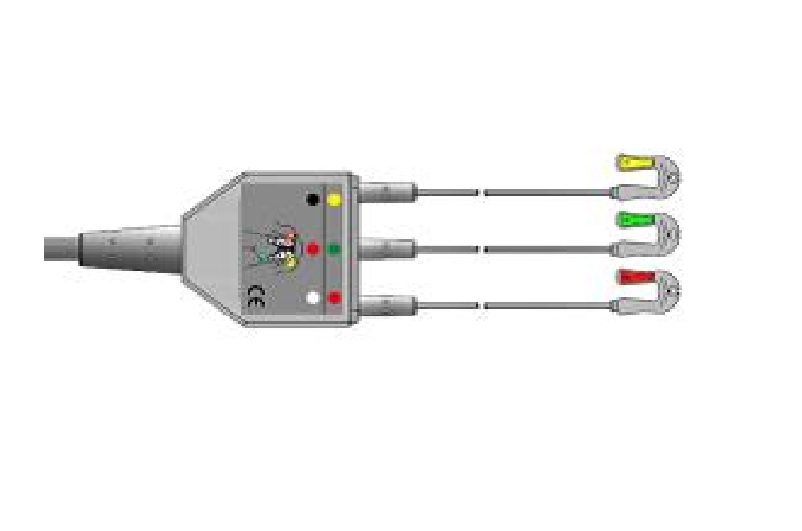 Los cables pacientes han sido diseñados para establecer una correcta transmisión de la actividad eléctrica cardíaca desde el paciente hasta el equipo. Sus características garantizan la obtención de una señal libre de interferencias. Los cables son del tipo de una sola pieza (no se desconectan los cables para electrodo descartables) y llevan conectores del lado paciente tipo pinza (cocodrilo) para electrodos descartables, código de colores Americano (AHA) (blanco(RA), negro(LA) y rojo(LL)). También existen otras alternativas especiales a pedido como ser: Código de colores Europeo (IEC), Resistencia de 1000 ohm de protección frente a descargas de desfibrilador, etc y todas ellas se pueden ordenar a pedido específico.