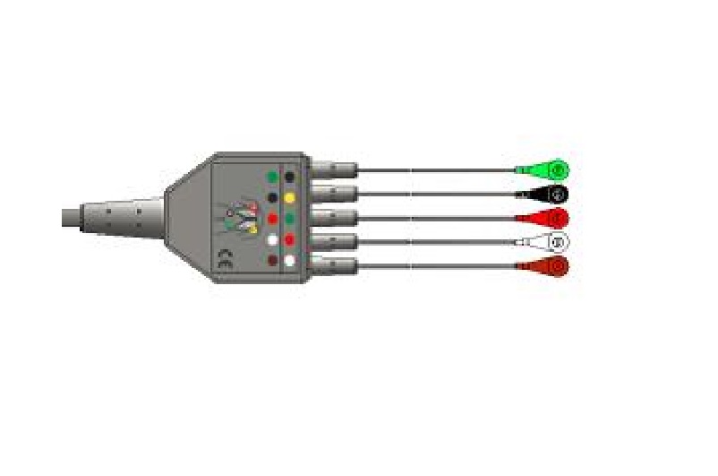 Los cables pacientes han sido diseñados para establecer una correcta transmisión de la actividad eléctrica cardíaca desde el paciente hasta el equipo. Sus características garantizan la obtención de una señal libre de interferencias. Los cables son del tipo de una sola pieza (no se desconectan los cables para electrodo descartables) y llevan conectores del lado paciente tipo SNAP para electrodos descartables, código de colores Americano (AHA) (blanco(RA), negro(LA), verde(RL), rojo(LL), marrón(V)). También existen otras alternativas especiales a pedido como ser: Código de colores Europeo (IEC), Resistencia de 1000 ohm de protección frente a descargas de desfibrilador, etc y todas ellas se pueden ordenar a pedido específico.