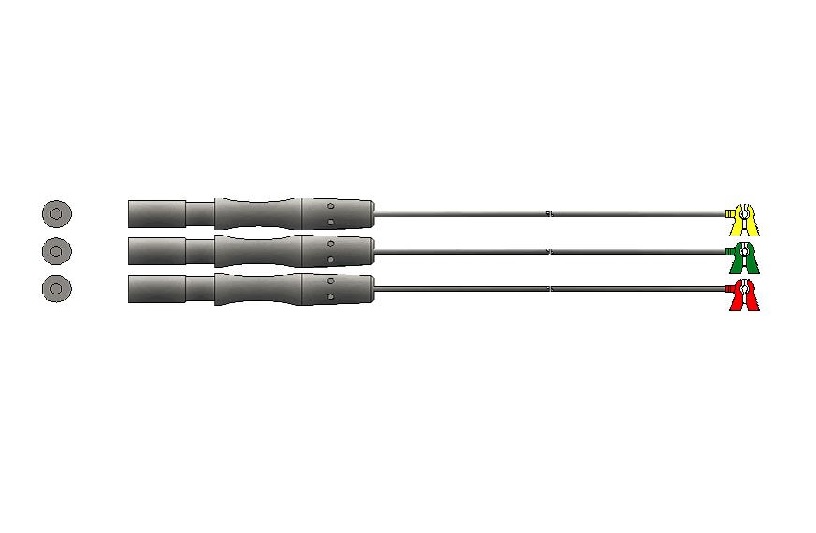 Los elementos de interfase de conexión para electrodos descartables, son cables de alta flexibilidad que garantizan conexiones seguras aún durante el movimiento de los pacientes. Vienen en configuración tripolar con código de color Americano (AHA) (blanco(RA), negro(LA), rojo(LL) y poseen terminales para electrodo mini Grabbers (tipo pinza miniatura (neonatal))