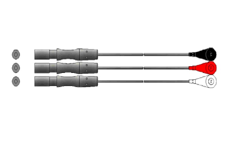 Los elementos de interfase de conexión para electrodos descartables, son cables de alta flexibilidad que garantizan conexiones seguras aún durante el movimiento de los pacientes. Vienen en configuración tripolar con código de color Americano (AHA) (blanco(RA), negro(LA), rojo(LL) y poseen terminales para electrodo tipo Snap (convencional)
