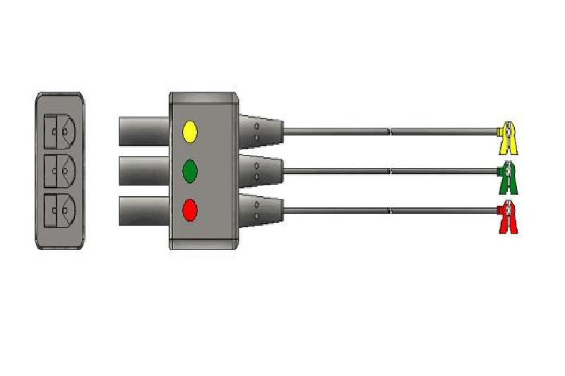 Los elementos de interfase de conexión para electrodos descartables, son cables de alta flexibilidad que garantizan conexiones seguras aún durante el movimiento de los pacientes. Vienen en configuración tripolar con código de color Americano (AHA) (blanco(RA), negro(LA), rojo(LL) y poseen terminales para electrodo mini Grabbers (tipo pinza miniatura (neonatal))