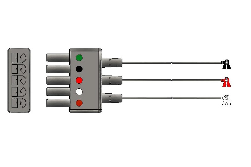Los elementos de interfase de conexión para electrodos descartables, son cables de alta flexibilidad que garantizan conexiones seguras aún durante el movimiento de los pacientes. Vienen en configuración tripolar con código de color Americano (AHA) (blanco(RA), negro(LA), rojo(LL) y poseen terminales para electrodo mini Grabbers (tipo pinza miniatura (neonatal))
