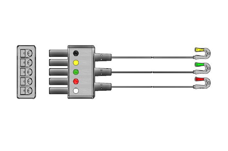 Los elementos de interfase de conexión para electrodos descartables, son cables de alta flexibilidad que garantizan conexiones seguras aún durante el movimiento de los pacientes. Vienen en configuración tripolar con código de color Americano (AHA) (blanco(RA), negro(LA), rojo(LL) y poseen terminales para electrodo Grabbers (tipo pinza)