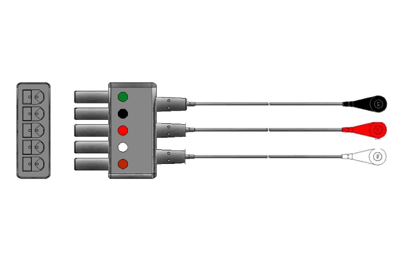 Los elementos de interfase de conexión para electrodos descartables, son cables de alta flexibilidad que garantizan conexiones seguras aún durante el movimiento de los pacientes. Vienen en configuración tripolar con código de color Americano (AHA) (blanco(RA), negro(LA), rojo(LL) y poseen terminales para electrodo tipo Snap (convencional)