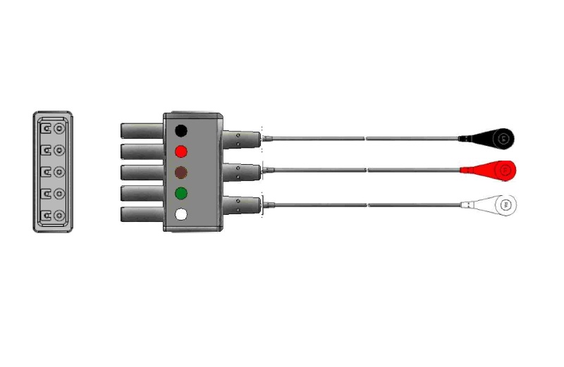 Los elementos de interfase de conexión para electrodos descartables, son cables de alta flexibilidad que garantizan conexiones seguras aún durante el movimiento de los pacientes. Vienen en configuración tripolar con código de color Americano (AHA) (blanco(RA), negro(LA), rojo(LL) y poseen terminales para electrodo tipo ?Snap? (convencional)