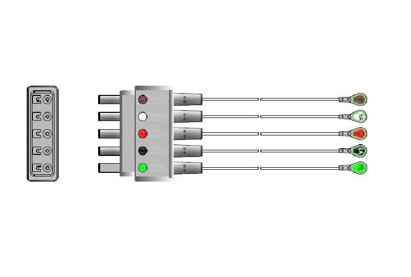 Los elementos de interfase de conexión para electrodos descartables, son cables de alta flexibilidad que garantizan conexiones seguras aún durante el movimiento de los pacientes. Vienen en configuración pentapolar con código de color Americano (AHA) (blanco(RA), negro(LA), verde(RL), rojo(LL), marrón(V) y poseen terminales para electrodo tipo ?Snap? (convencional)
