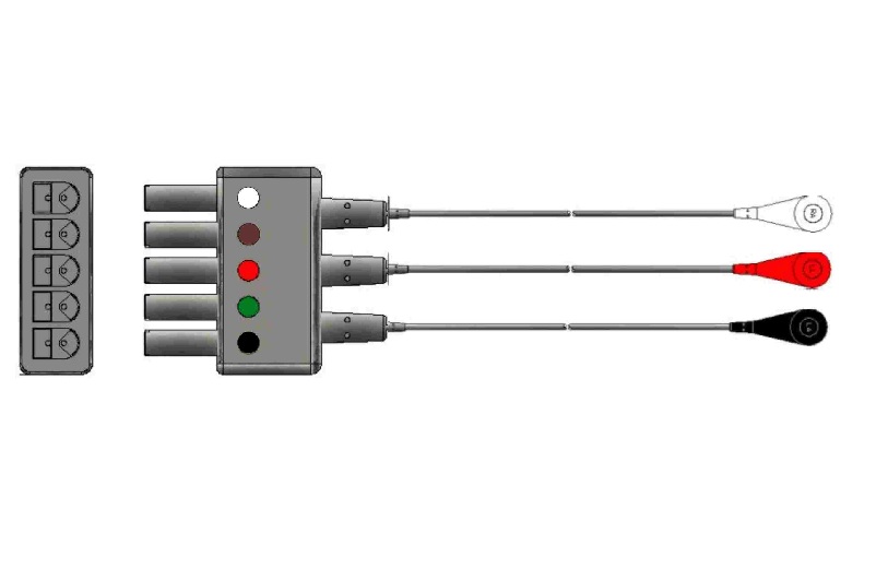 Los elementos de interfase de conexión para electrodos descartables, son cables de alta flexibilidad que garantizan conexiones seguras aún durante el movimiento de los pacientes. Vienen en configuración tripolar con código de color Americano (AHA) (blanco(RA), negro(LA), rojo(LL) y poseen terminales para electrodo tipo ?Snap? (convencional)