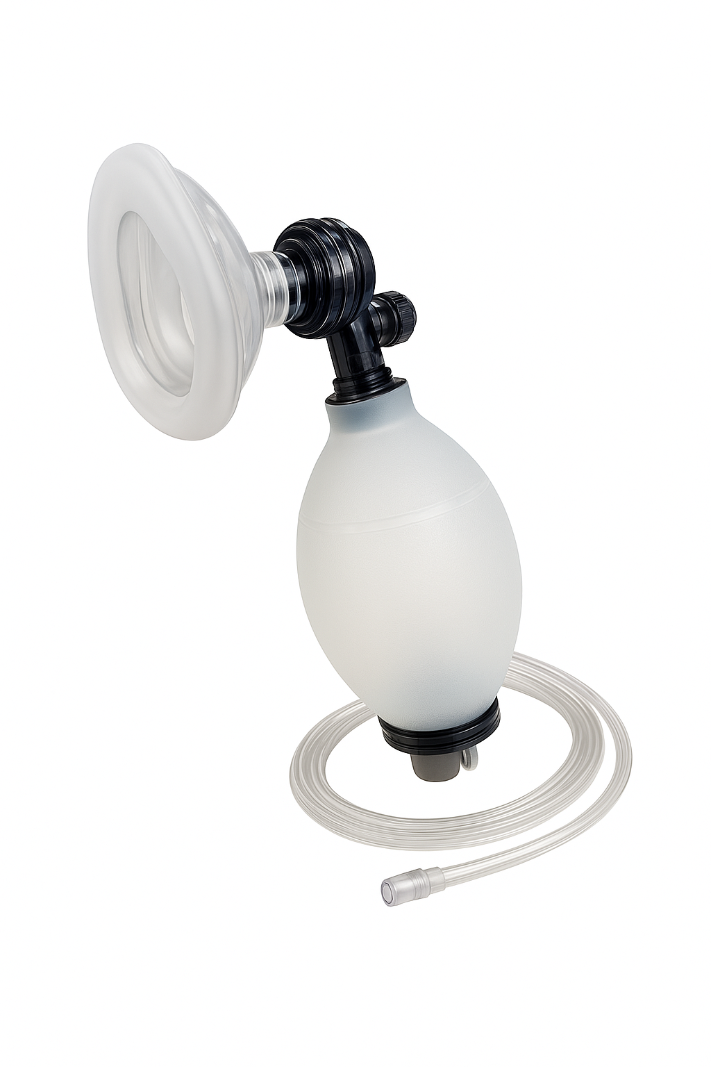 Su diseño integrado con válvula de no retorno impide que los gases exhalados ingresen en la bolsa de reanimación, asegurando un flujo unidireccional de gas fresco hacia el paciente y disminuyendo el riesgo de reinhalación.