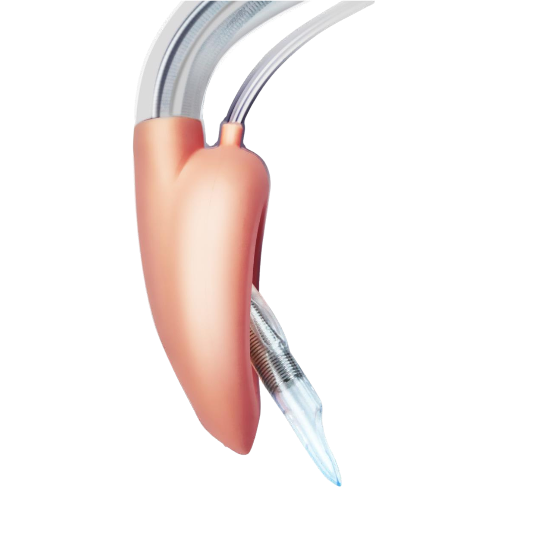 Máscara laríngea de tercera generación fabricada en silicona de grado médico, reutilizable, diseñada para un manejo avanzado y seguro de la vía aérea. Sus tubos cortos angulados a más de 95° coinciden con la curva orofaríngea, permitiendo una inserción fácil y precisa. El canal de acceso gástrico reduce el riesgo de aspiración y facilita la inserción de la sonda, mientras que su capacidad de intubación y la tasa de éxito para el intercambio del tubo endotraqueal es superior al 95%. Incluye un dispositivo de guía que direcciona el tubo endotraqueal directamente hacia la glotis y un dispositivo de recolección de secreciones para mayor seguridad. El conector de cuatro vías facilita la fijación después de la colocación, garantizando estabilidad durante todo el procedimiento.