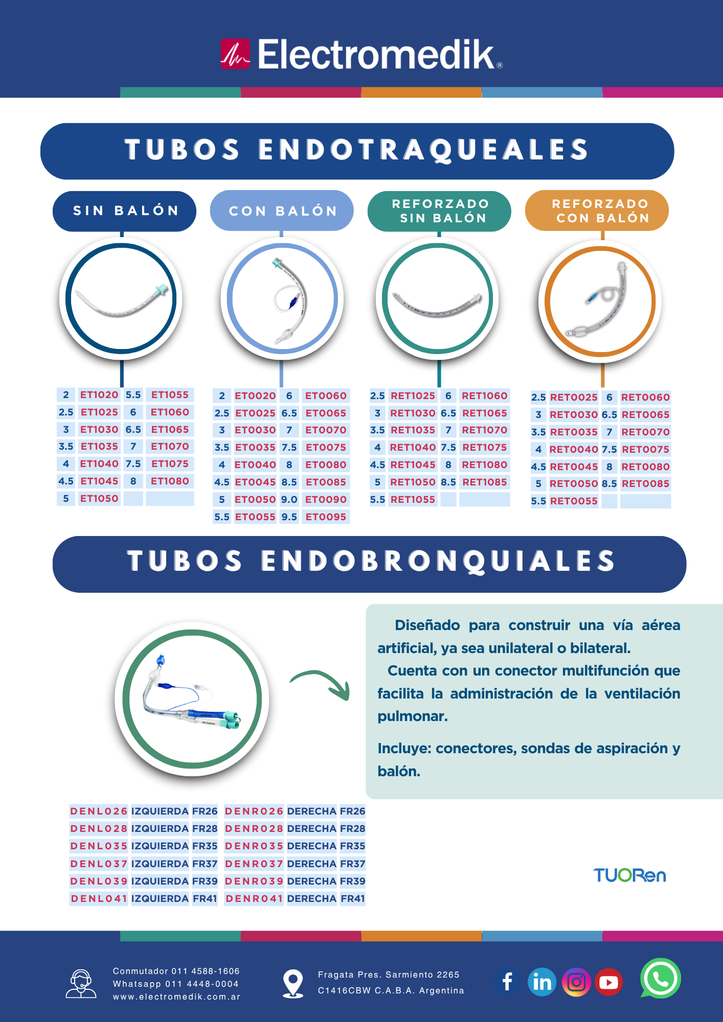 Tubo endotraqueal descartable, apto para inserción nasal u oral. Libre de DEHP para mayor bioseguridad. Equipado con línea radiopaca en la punta distal, sobre el balón bronquial, que permite una fácil visualización en radiografías para verificar la colocación correcta.