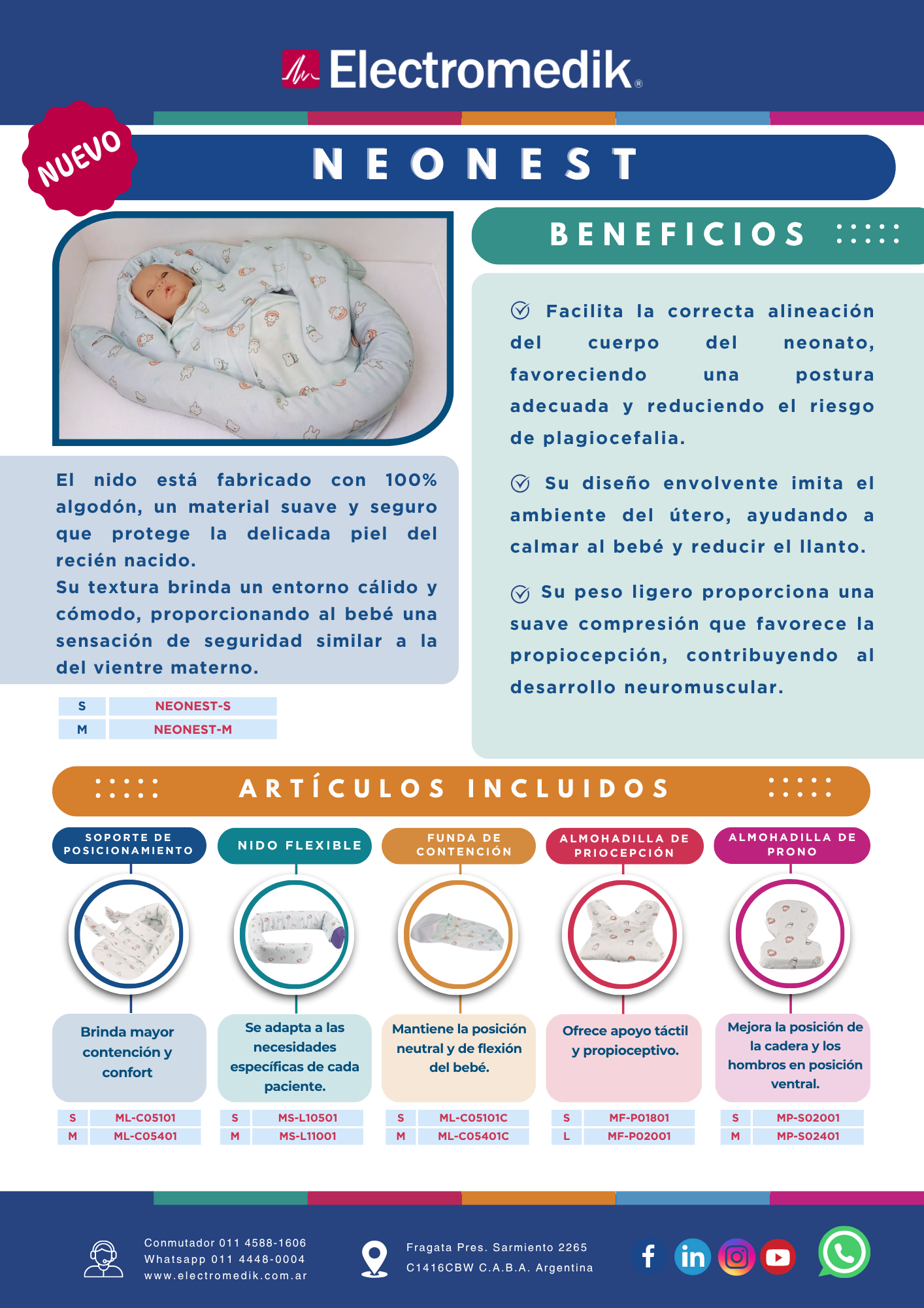 El nido está diseñado para brindar al bebé un entorno cálido, seguro y confortable desde sus primeros días. Fabricado con espuma de poliuretano de alta calidad y varilla de plomo moldeable, permite adoptar diferentes formas para asegurar firmeza, contención y protección.
