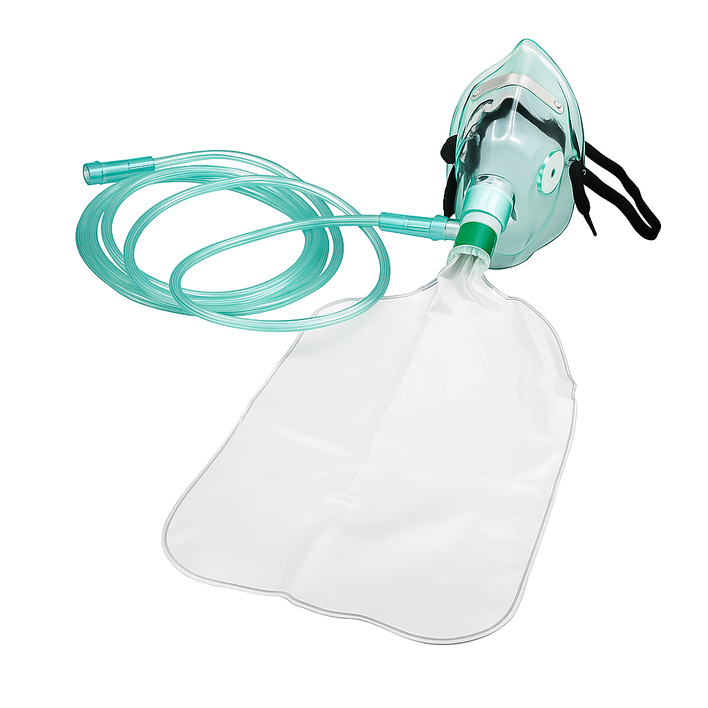 Mascarilla con reservorio diseñada para administrar altas concentraciones de oxígeno a pacientes que requieren soporte respiratorio avanzado. Cuenta con un reservorio que acumula oxígeno y una válvula unidireccional que impide el reingreso del CO2 espirado, garantizando una entrega eficaz de oxígeno con una FiO2 entre 60% y 80%. Incluye válvulas unidireccionales que permiten la salida del aire espirado evitando la entrada de aire ambiente, máscara flexible y traslúcida que se adapta cómodamente a la anatomía facial, libre de látex y con bolsa de reservorio de PVC esmerilado resistente y segura.