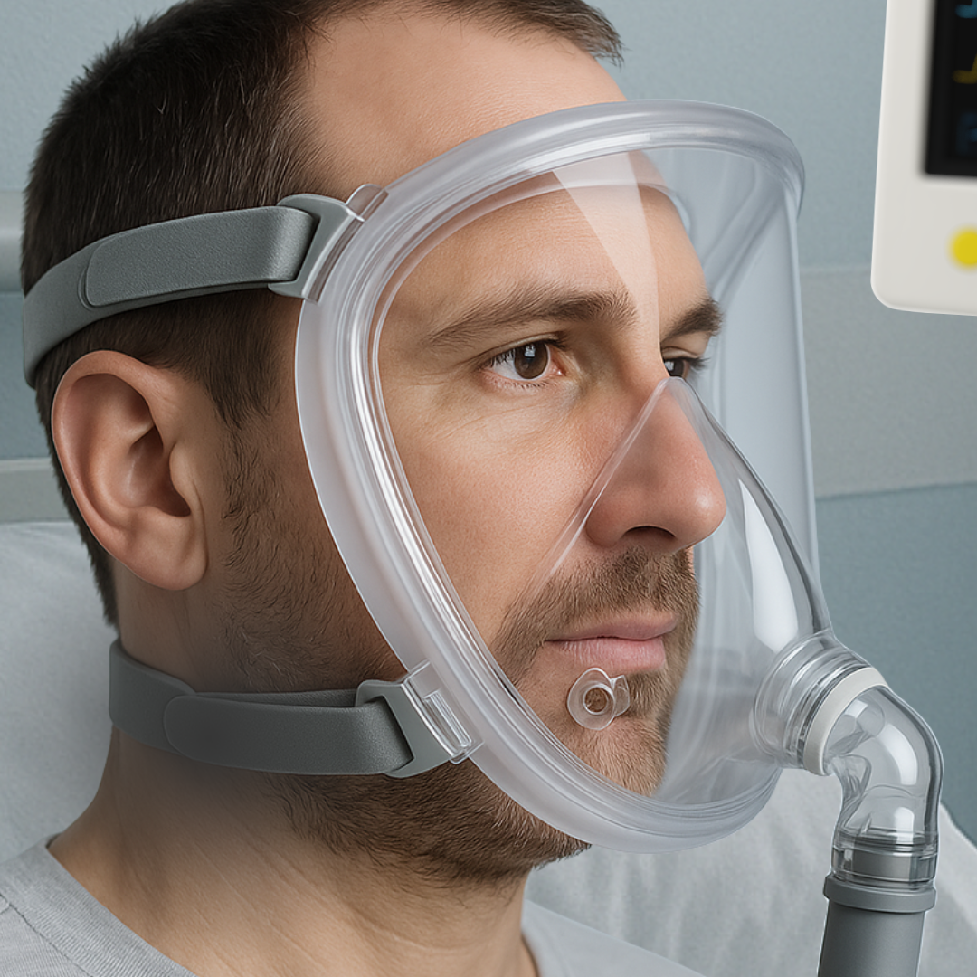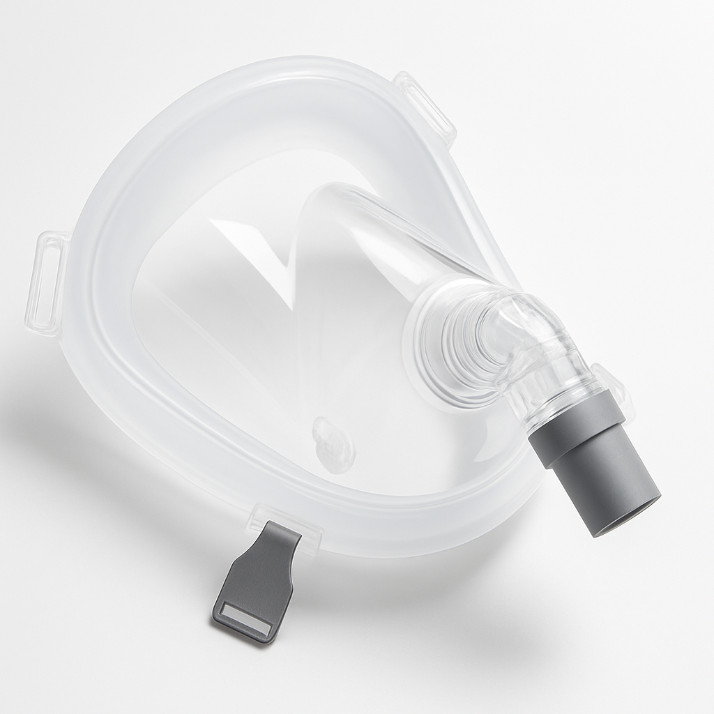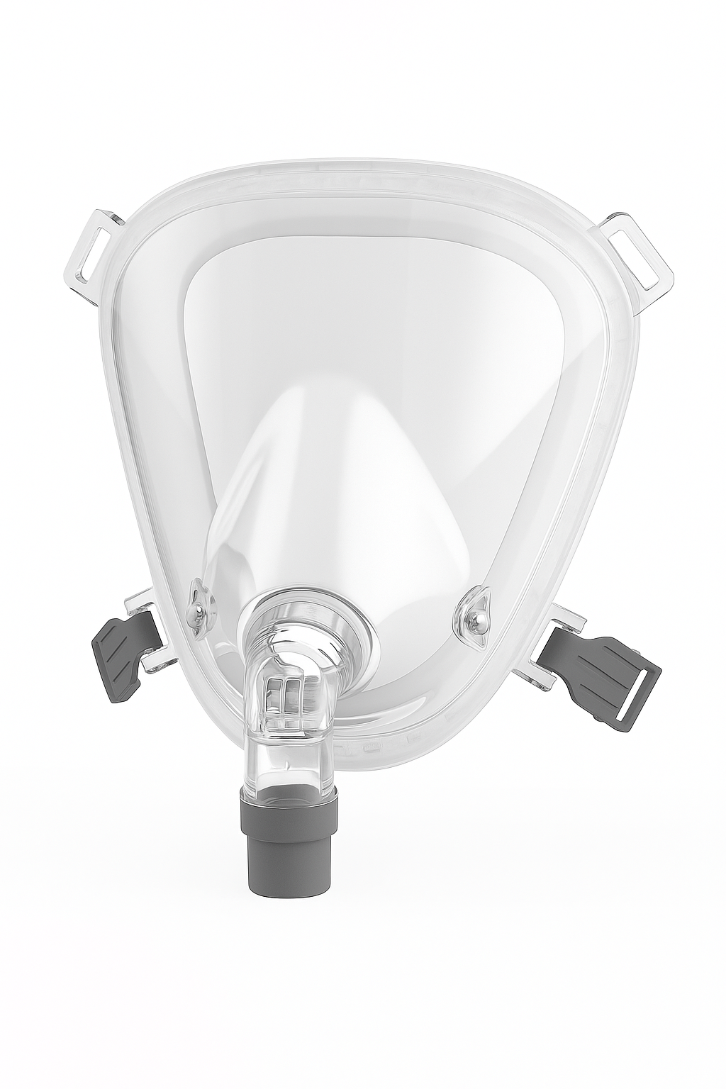 Su estructura cubre todo el rostro para garantizar un sellado confiable, permitiendo una ventilación no invasiva eficaz incluso en usos prolongados, ayudando a prevenir fugas, lesiones faciales y brindando una experiencia de uso cómoda y segura.